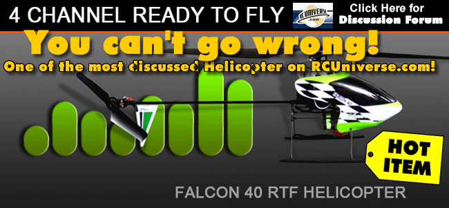 Falcon 40 has been optimized for performance. It is very responsive and very quick to follow inputs from the pilot. It can fly 10 - 15 minutes each charge. It’s a great helicopter very well designed and very enjoyable.