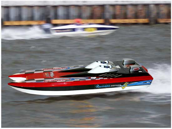 Race on the water with your Off Shore Racing Boat! This watercraft comes powered by a 380 type motor and dual professional propellers. The boat can handle rough water and can reach speeds up to 30mph. It comes with every thing you need, including rechargeable battery, charger and transmitter. So take to the waters and race with your very own Off Shore Racing Boat! |
