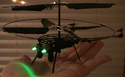 helicopter. The mini aircraft is so small, it actually fits in the palm of