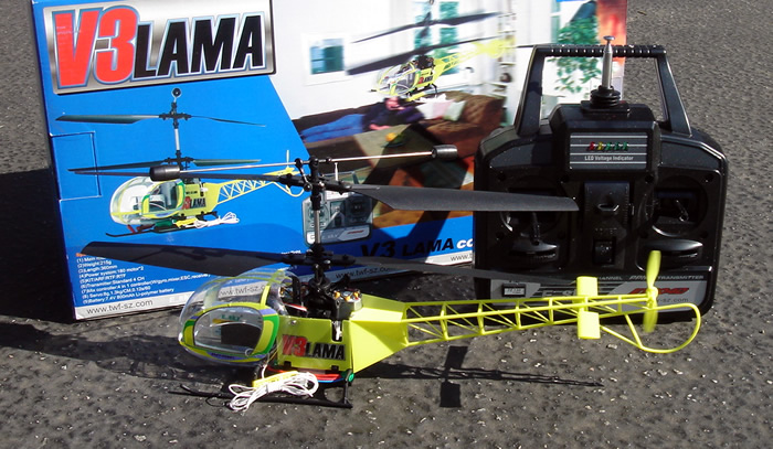 This is the Latest Version3 Esky LAMA Co-Axial Helicopter included with flight simulator kit! V3 Lama Flies stably and silently indoors and out door, just as walks in the air, enables you and your family to get warmer and enjoyment. With double-sharing-one-axis structure and with stable and silent flight, it is designed for the beginners with simple flying operation and easy to learn how to fly. You can be familiar with its operating way and enjoy the flying in short-term. With power supply of Li-polymer battery enable it to fly lighter and longer. Complete set, ready to fly. Only requires 8 AA Batteries for Transmitter.