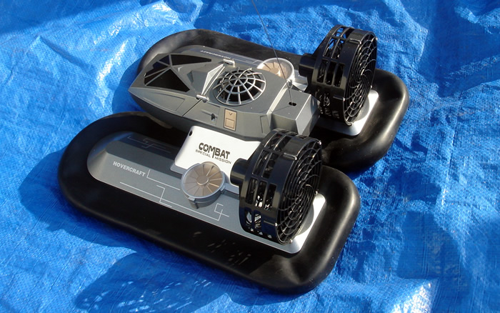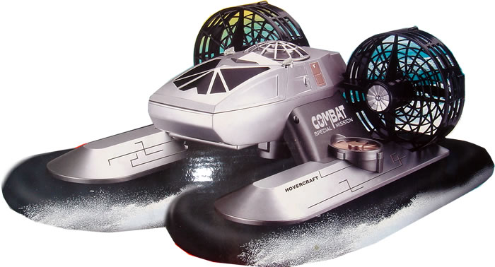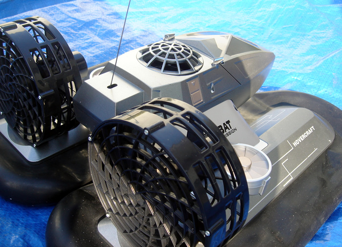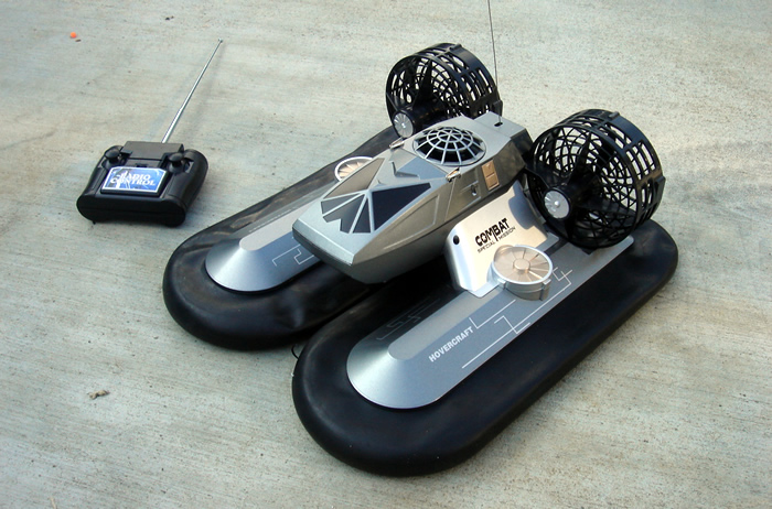 this radio-controlled hovercraft! It jets over surfaces on a cushion of air
