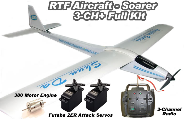 The Soarer has opened a whole new world of soaring excitement for modellers everywhere by giving them a beautifully crafted electric-powered sailplane that goes together in about one hour including charging the battery, all that's left for a modeller to do now is install the transmitter batteries, bolt on the tail, slide together the wing halves, charge the included Ni-Cd battery, and fly.